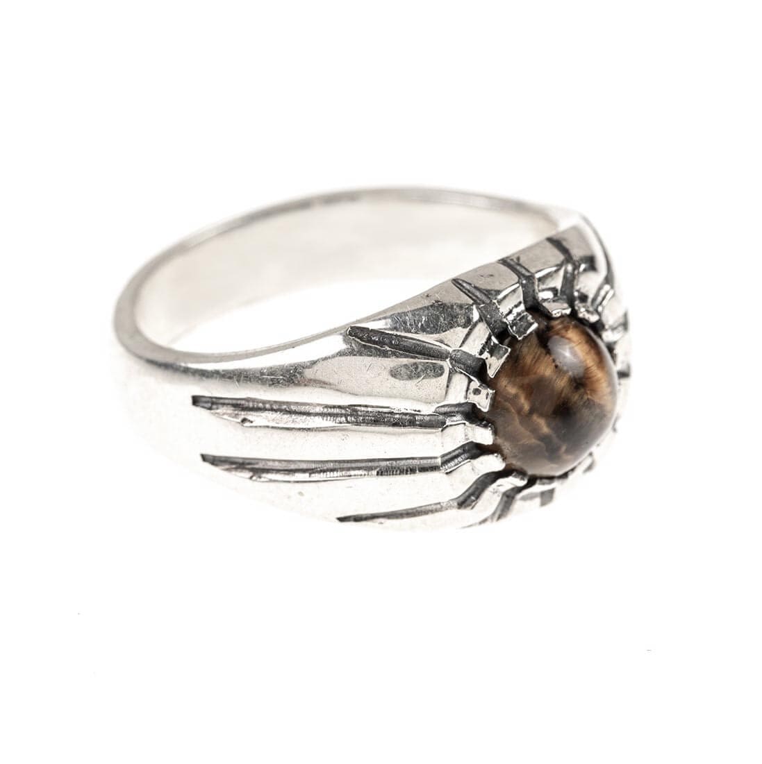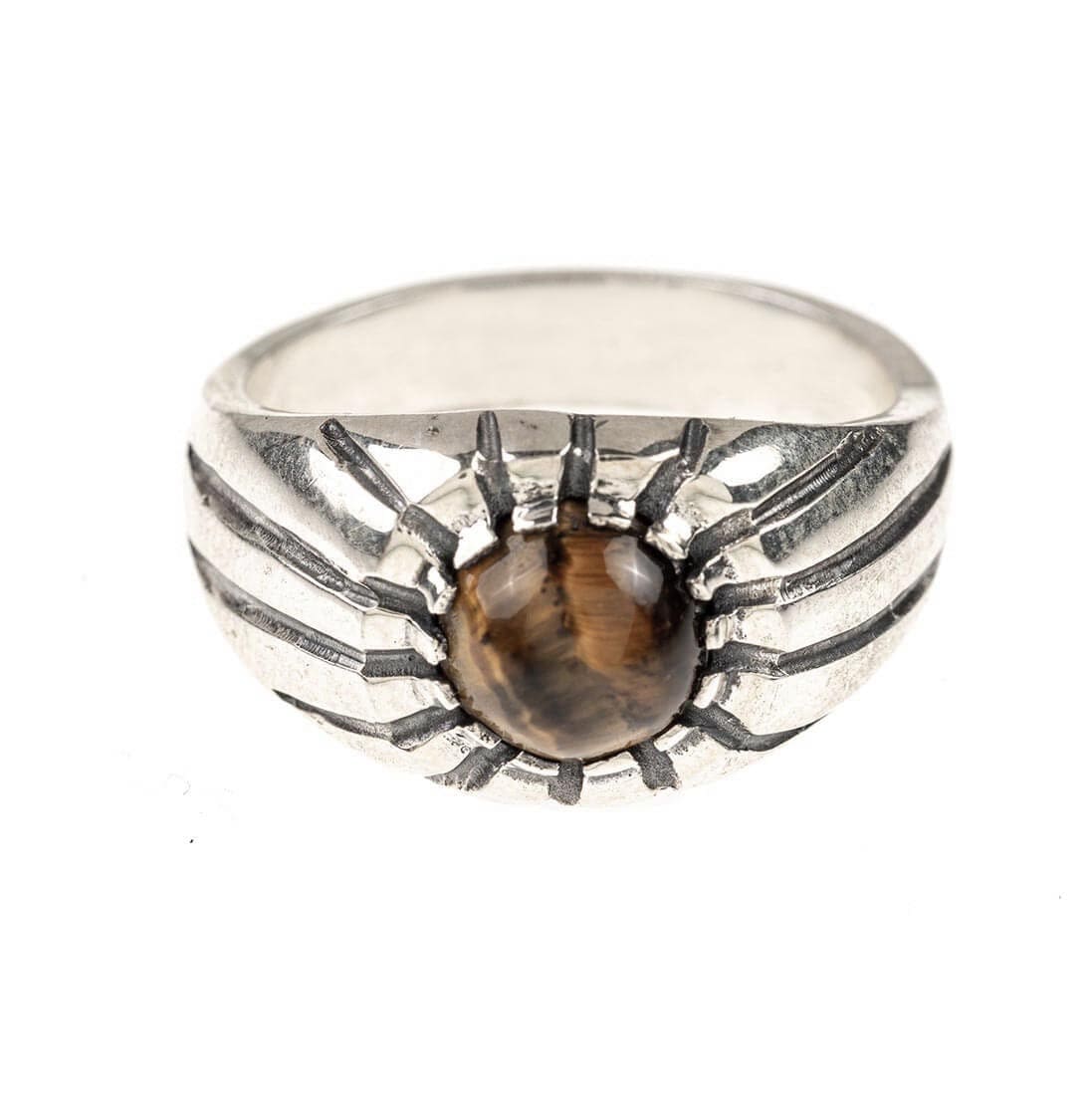 Anillo en Plata ley 950 hecho a mano. Engaste piedra Ojo de tigre.