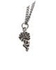 Dije hecho a mano en Plata Ley 950, procesos de tallado, laminados, y entorchados, cadena en acero quirúrgico europeo.