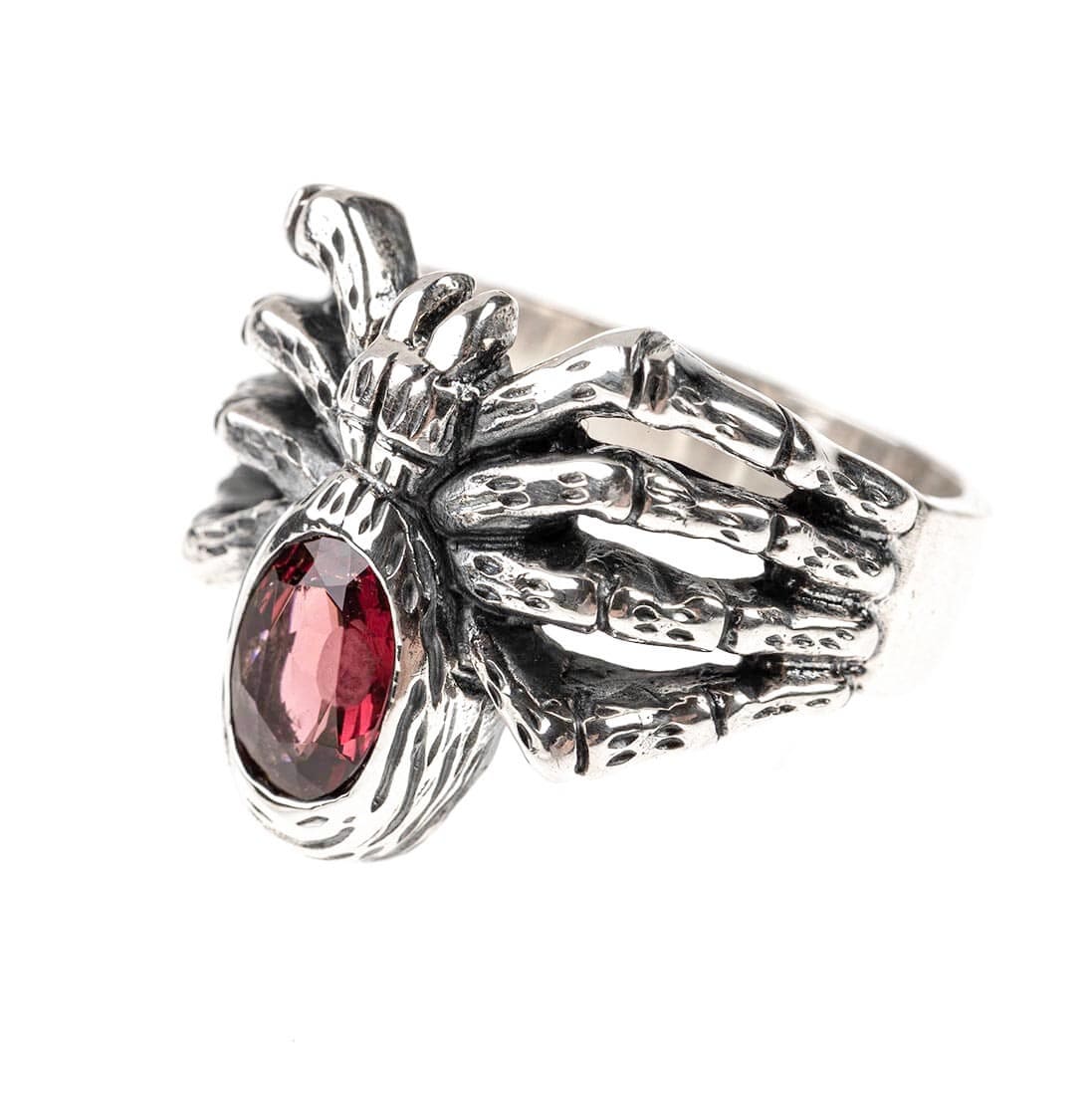 Anillo en Plata ley 950 hecho a mano. Engaste piedra Granate.